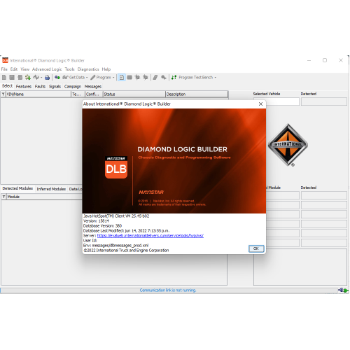 Diamond Logic Builder 2025 (DLB) provides high performance diagnostics for electrical systems in international trucks and high performance IC buses. DLB Fleet displays vehicle signals in graphic and text format. This software also reads and displays the vehicle’s diagnostic trouble codes, as well as the vehicle’s characteristics and parameters.
